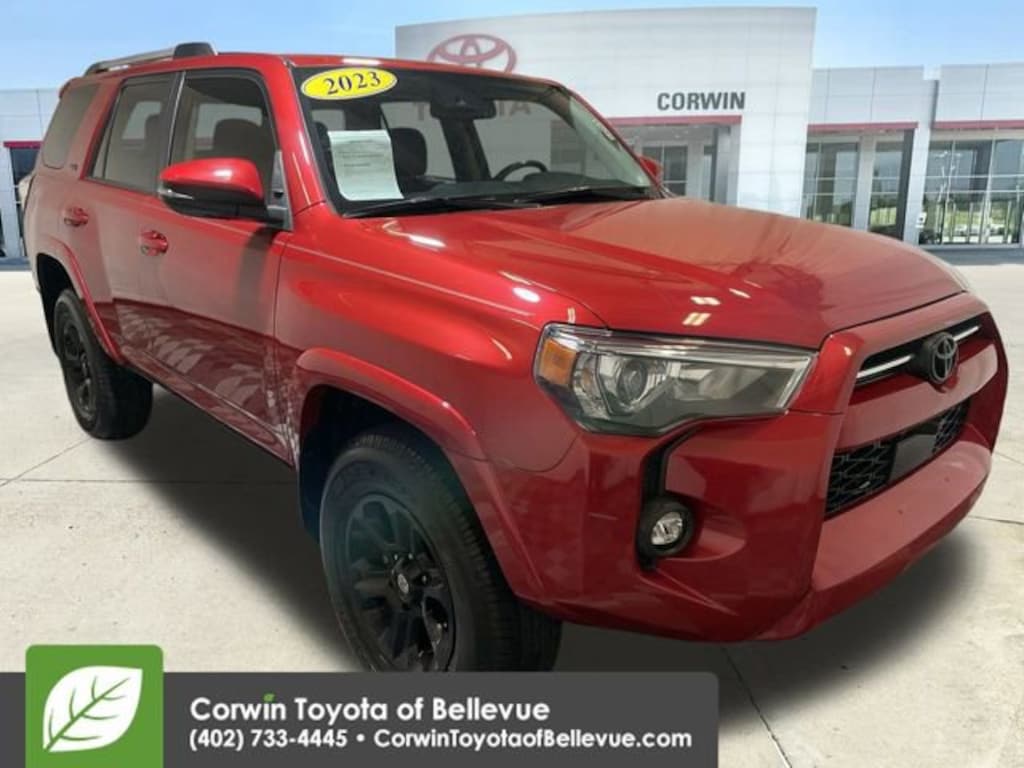 Strong and sturdy, our Accident Free, One Owner 2023 Toyota 4Runner SR5 Premium 4WD adds extra comfort to its exceptional capability in Barcelona Red Metallic! Motivated by a 4.0 Liter V6 that serves up 270hp paired to a 5 Speed Automatic transmission. You can handle busy days and bold challenges with that on board, and our Four Wheel Drive SUV achieves nearly 19mpg on the highway. A legendary name for adventure, our 4Runner looks great with its LED lighting, fog lamps, a protective skid plate, alloy wheels, roof rails, mudguards, a power liftgate window, a two hitch receiver, and heated power mirrors with built-in turn signals.