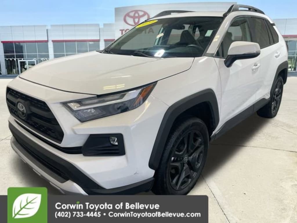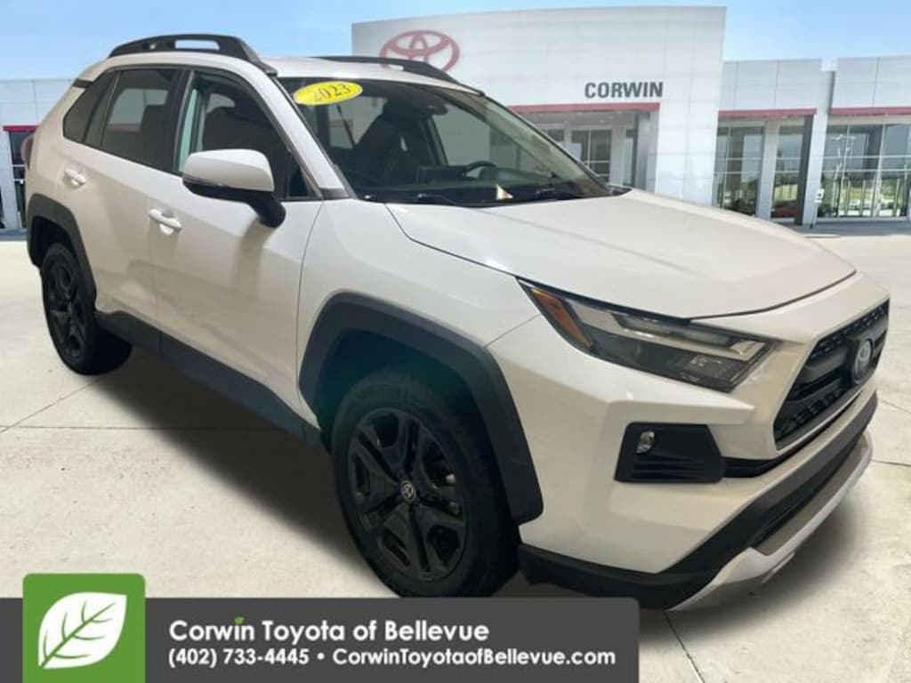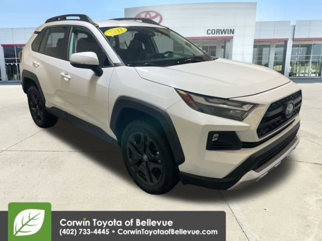 Calling all trail lovers, our Accident Free, One Owner 2023 Toyota RAV4 Adventure AWD is at your service in Ice Cap! Motivated by a 2.5 Liter Dynamic Force 4 Cylinder that supplies 203hp to an 8 Speed Automatic transmission for real-world capability. Active torque vectoring and terrain management can help you explore your limits, and this All Wheel Drive SUV achieves nearly 33mpg on the highway. Rugged looking and hard to resist, our RAV4 is ready to rock with LED lighting, fog lamps, 19-inch alloy wheels, Adventure bumpers, extended fenders, an exclusive grille, and roof rails with crossbars.