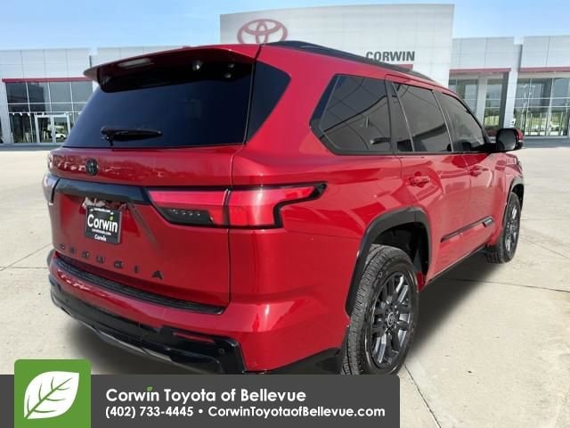 Discover the epitome of luxury and capability in the 2024 Toyota Sequoia Platinum. This stunning SUV boasts a striking Red exterior and a sophisticated V6 Hybrid powertrain, delivering exceptional performance and efficiency with its 10-Speed Automatic transmission and 4WD system.