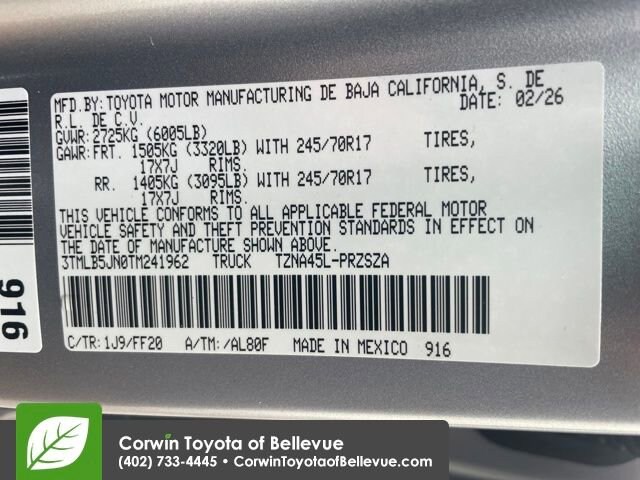 With its rugged good looks, impressive capabilities, and thoughtful amenities, the 2026 Toyota Tacoma SR5 is the perfect blend of utility and comfort. Whether you're tackling the daily commute or heading out on a weekend adventure, this Tacoma is ready to take you there.