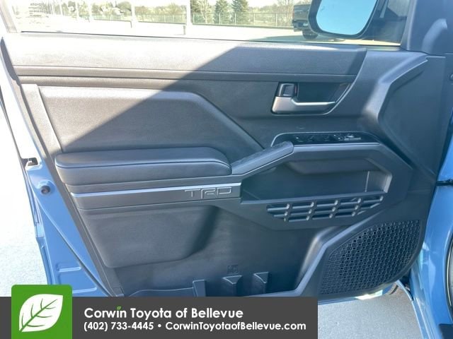 The Tacoma TRD Sport's bold exterior design is enhanced by its striking Blue paint and rugged, yet stylish, 18-inch TRD Sport alloy wheels. Inside, the cabin offers a premium SofTex-trimmed interior, complete with heated front seats, a power-adjustable driver's seat, and a host of advanced technology features to keep you connected and entertained on the go.