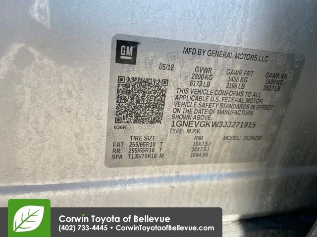 Confident and bold, our Accident Free, One Owner, Low Mileage 2018 Chevrolet Traverse LT AWD offered in amazing Silver Ice Metallic is ready for duty! Powered by a 3.6 Liter V6 that delivers 310hp connected to a 9 Speed Automatic transmission for easy passing and towing. Whether taking the kids to school, commuting to work, or towing that toy on the weekends, our All Wheel Drive SUV is at your service, offering nearly 27mpg on the highway. As you approach our terrific Traverse, you will immediately notice the athletic design, LED lighting, HID headlamps, fog lamps, heated power mirrors, a power liftgate, and fantastic alloy wheels.