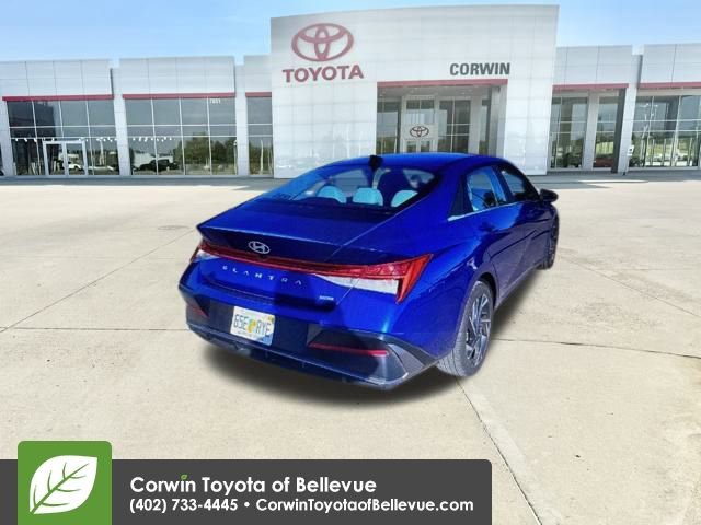Our Accident Free, One Owner 2025 Hyundai Elantra Hybrid Limited Sedan helps give you the edge for style and efficiency in Intense Blue! Powered by a 1.6 Liter 4 Cylinder and an Electric Motor providing a combined 139hp to a 6 Speed EcoShift Double-Clutch Automatic transmission with multiple drive modes. You can also enjoy composed handling in this Front Wheel Drive sedan, which achieves nearly 49mpg in the city and nearly 52mpg on the highway. Expressive and dynamic, our Elantra hybrid has a bold exterior backed by a power sunroof, LED lighting, a hands-free trunk, eye-catching alloy wheels, and heated power mirrors with built-in turn signals.