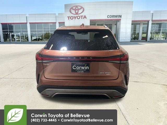 Our Accident Free, One Owner, Low Mileage 2024 Lexus RX 350 Premium+ AWD demands attention with impressive luxury cues and sophisticated good looks in Copper Crest! Powered by a TurboCharged 2.4 Liter 4 Cylinder providing 275hp to a paddle-shifted 8 Speed Automatic transmission that unlocks enthusiastic driving. You can also enjoy confident cornering in this All Wheel Drive SUV, which returns nearly 28mpg on the highway with a calm and comfortable ride. Inspiring and intelligent, our RX appeals to design lovers with a power sunroof, LED lighting, fog lamps, a power liftgate, alloy wheels, roof rails, and heated power mirrors.