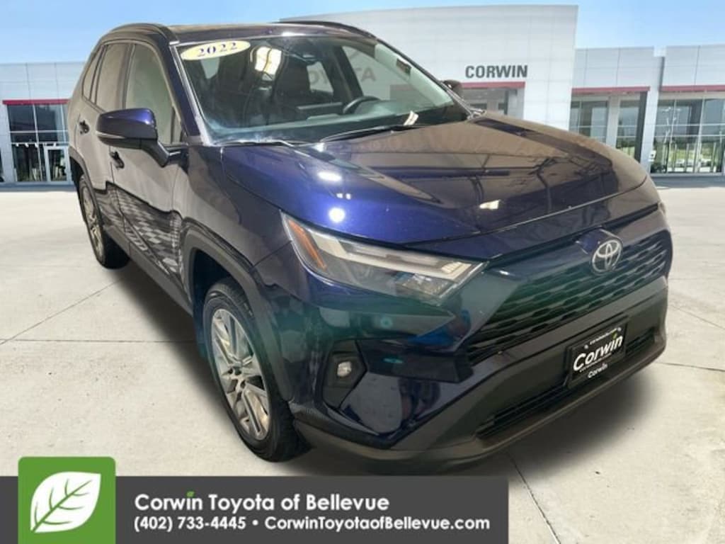 Command attention with our Accident Free, One Owner 2022 Toyota RAV4 XLE Premium AWD delivering impressive advantages with a daring Blueprint design! Motivated by a 2.5 Liter Dynamic Force 4 Cylinder generating 203hp connected to an 8 Speed Direct Shift Automatic transmission. Our All Wheel Drive SUV is a top-notch travel companion with terrain management, plus it achieves nearly 34mpg on the highway. This RAV4 also has an eye-catching presence that goes nearly perfectly with LED lighting, fog lamps, a power sunroof, a power liftgate, chrome exhaust outlets, 19-inch Super Chrome wheels, roof rails, and heated power mirrors.