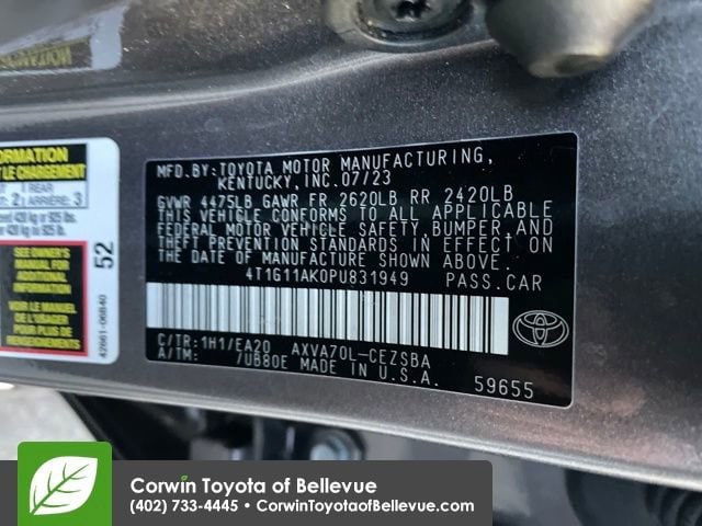 Recent Arrival! CARFAX One-Owner. Clean CARFAX. ABS brakes, Active Cruise Control, Alloy wheels, Electronic Stability Control, Front dual zone A/C, Heated door mirrors, Illuminated entry, Low tire pressure warning, Remote keyless entry, Traction control. Predawn Gray Mica Corwin Toyota of Bellevue is pleased to offer this 2023 Toyota Camry. FWD 4D Sedan SE 28/39 City/Highway MPG